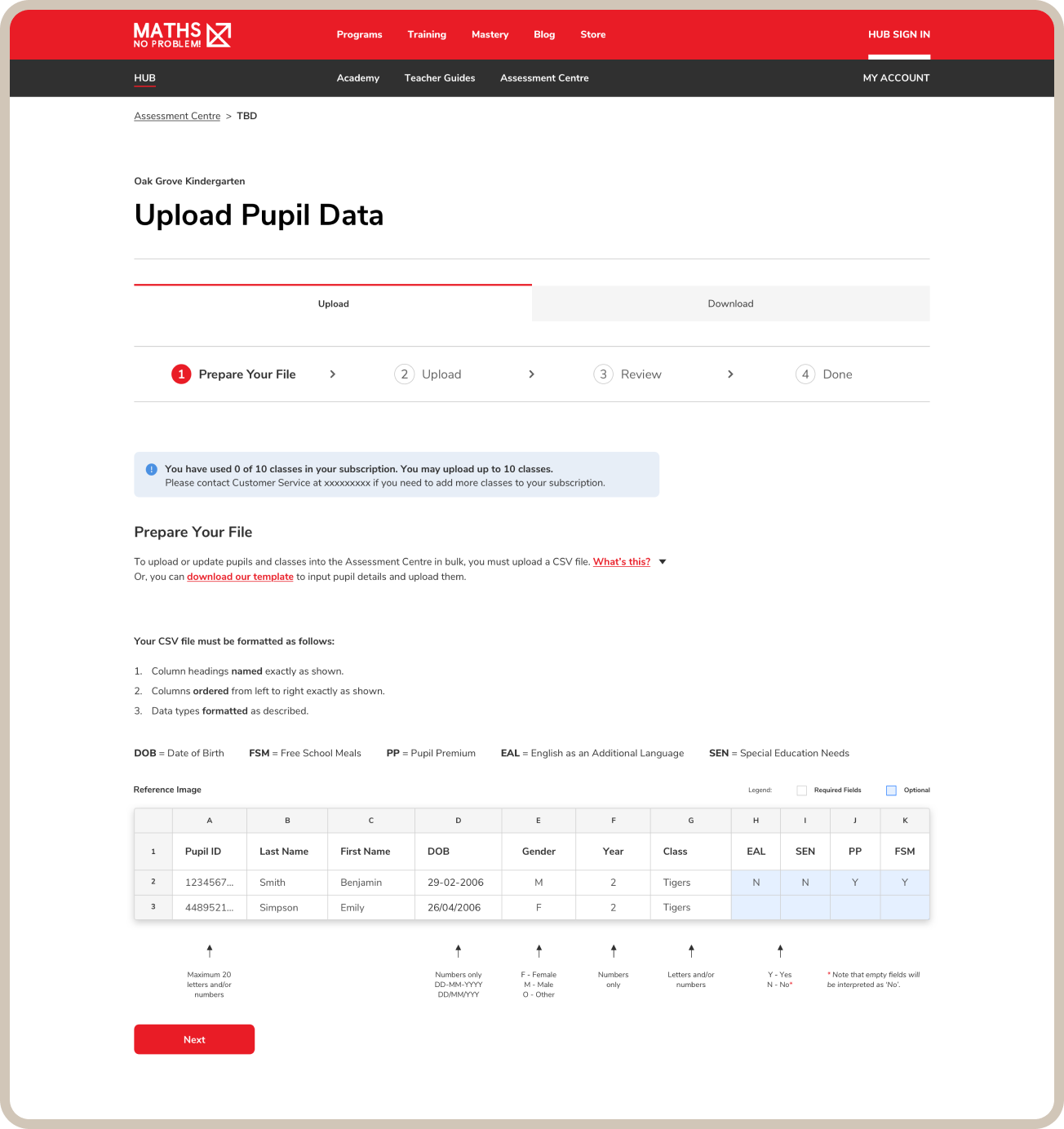 Designed a step-by-step upload flow to help admins quickly import classes and students. Clear error messages and a consistent design system made the process smoother and more reliable.