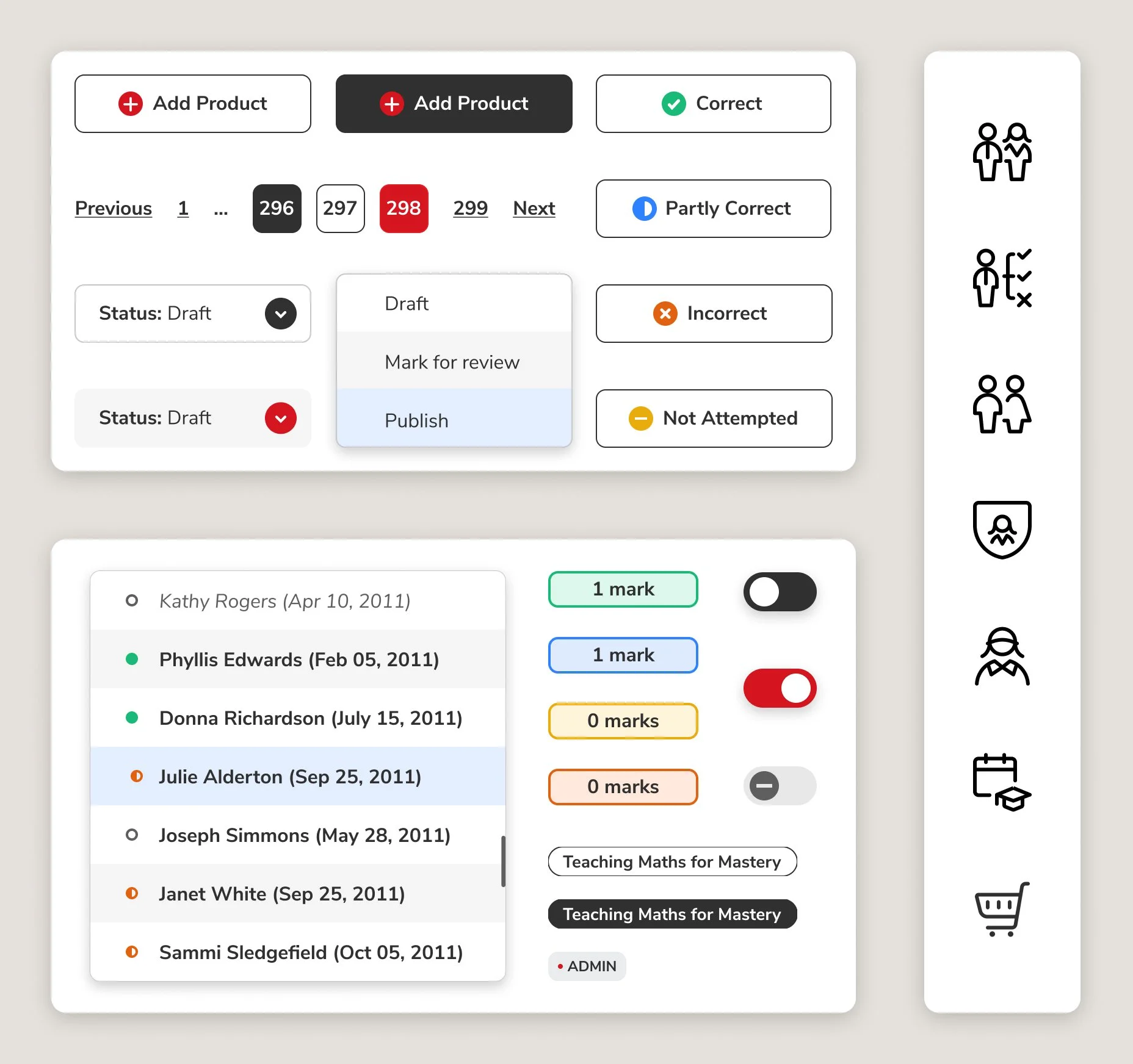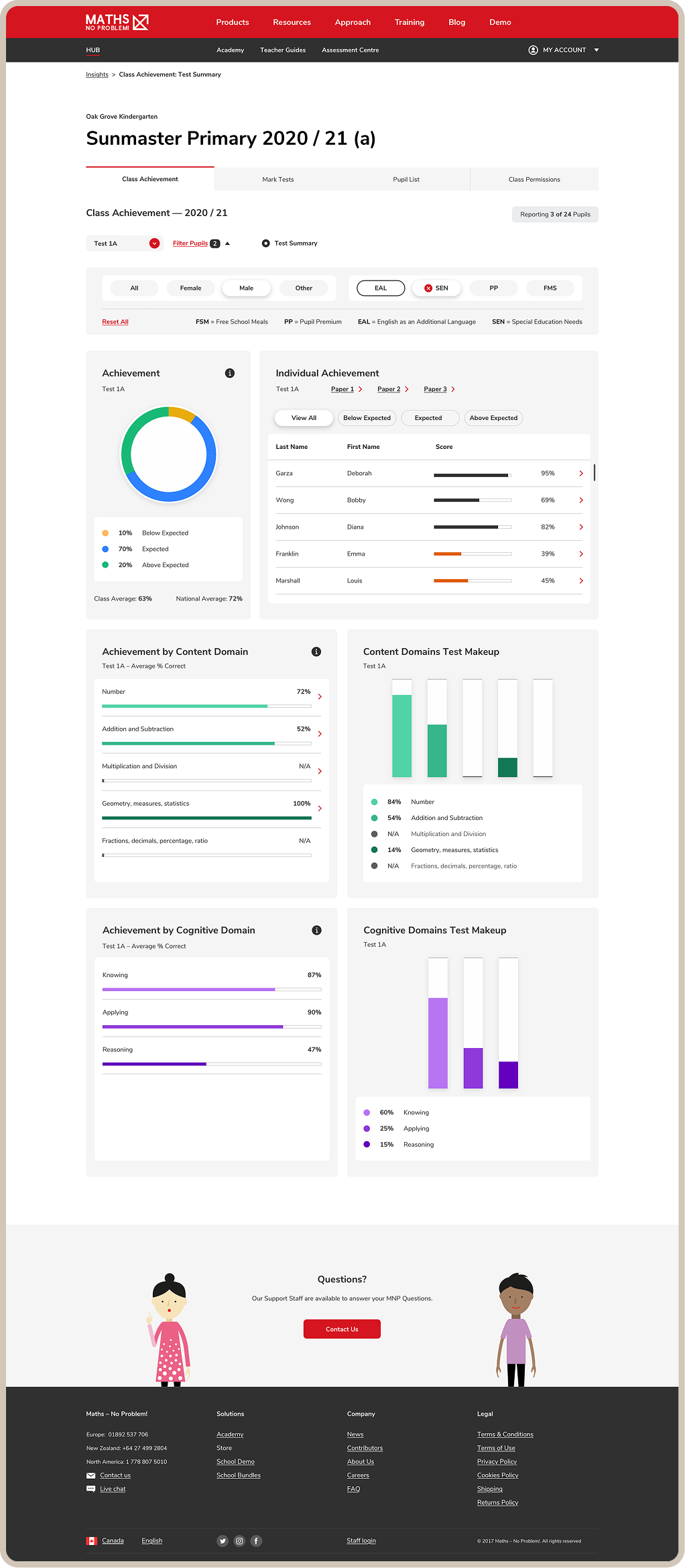 While at Maths — No Problem! (MNP) I collaborated with cross-functional teams to help launch one of the company’s most anticipated products: Insights. As the design lead, I spearheaded the creation and implementation of a unified design system, introduced new design processes, and fostered strong cross-brand collaboration to ensure a cohesive and scalable product experience.